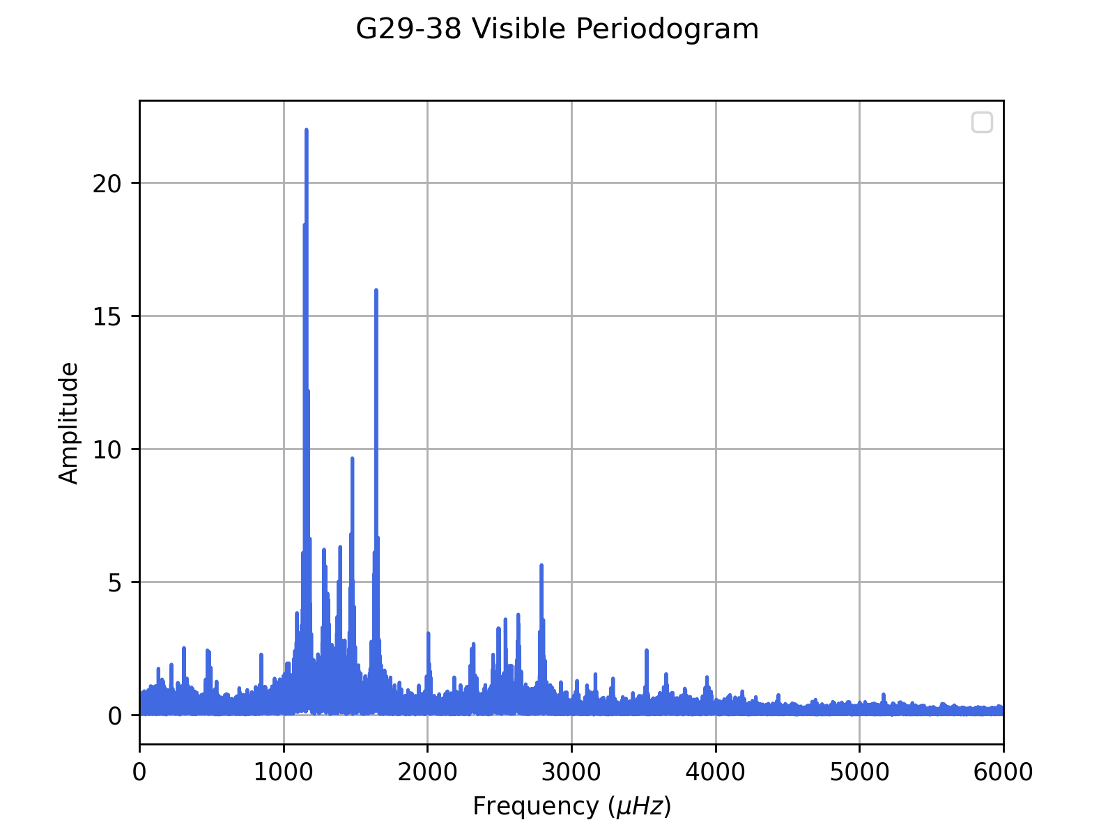 The periodogram of G29-38's optical light curve showing the presence of many pulsations.